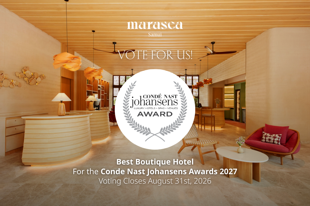 Marasca Samui is honored to be nominated for the Condé Nast Johansens Awards for Excellence 2027—and we’re thrilled to be in the running for Best Boutique Hotel.