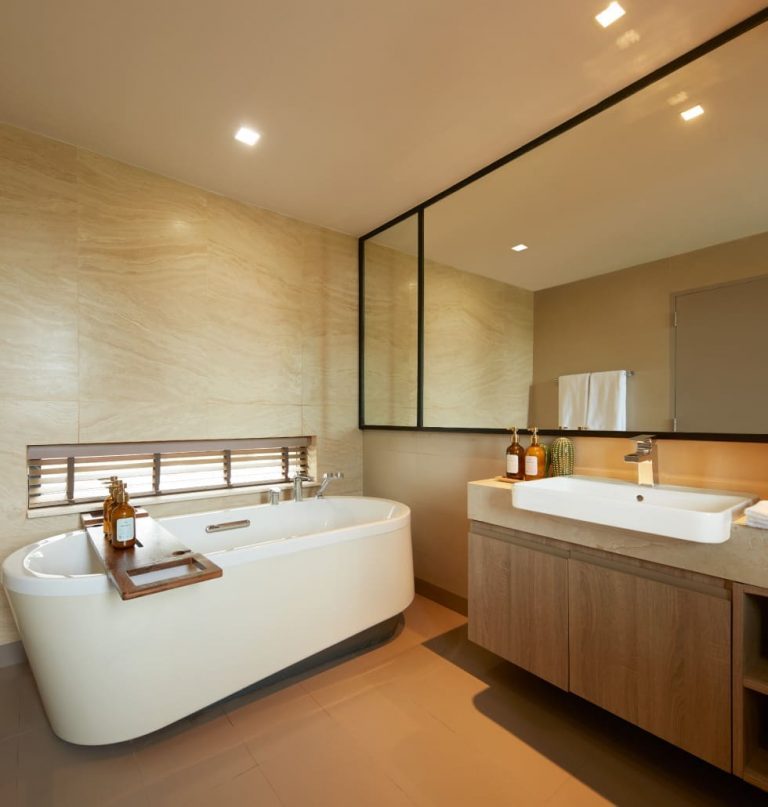 Our three-bedroom villa makes it easy to feel at home during your stay in Khao Yai, rested among greenery and stunning mountain views. Pet-friendly, with a generous indoor and outdoor living space, with terraces and firepits ideal for nighttime stargazing. Fully equipped kitchen pantry, high quality showers, a bathtub, and luxurious beddings, these villas are ideal for extended getaways. Please click here to see our pet-friendly policy.