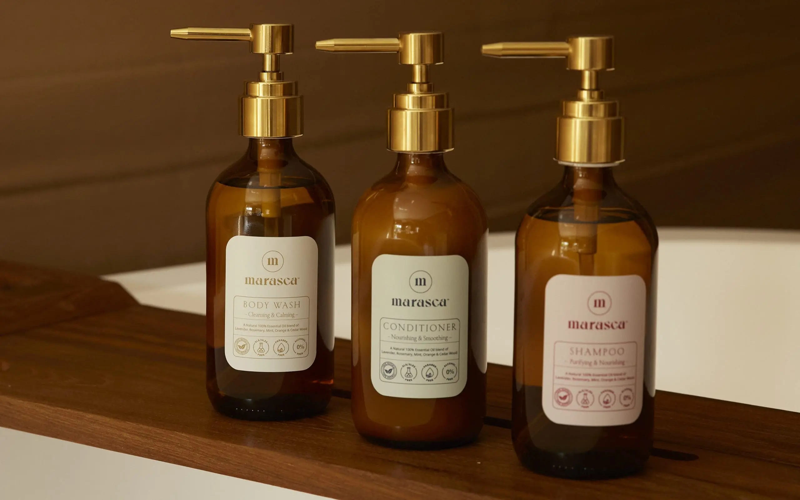 ที่ Marasca เราทำทุกอย่างที่เอ่ยมา เราสร้างสรรค์กลิ่นซิกเนเจอร์ของเราขึ้นจากน้ำมันธรรมชาติ 100% เป็นน้ำมันโรสแมรี มินท์ ส้ม ลาเวนเดอร์ และกลิ่นไม้ซีดาร์ ก่อนนำมาผสมในผลิตภัณฑ์คุณภาพเยี่ยมของเรา ไม่ว่าจะเป็นเจลอาบน้ำ โลชั่นทาผิว แชมพู ครีมนวดผม และบับเบิลบาธ เพราะเราอยากให้คุณได้เข้าสู่โลกแห่งการพักผ่อนอย่างแท้จริง ให้คุณได้ผ่อนคลาย สดชื่น และสุขภาพดีจากการใช้น้ำมันหอมระเหย ให้คุณได้ค้นพบตัวเองผ่านกลิ่นหอมนุ่มนวลที่สุดของเรา