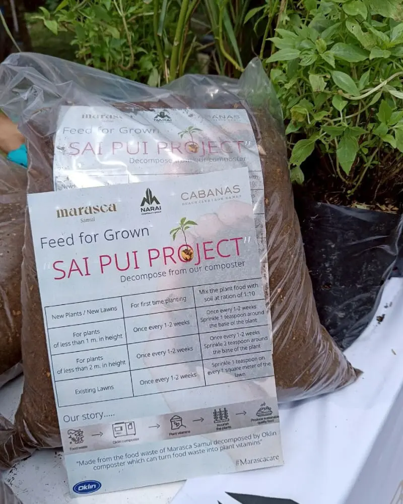 - ปุ๋ยหมักอินทรีย์ 50 กิโลกรัม ผลิตจากเศษอาหารภายในโรงแรม