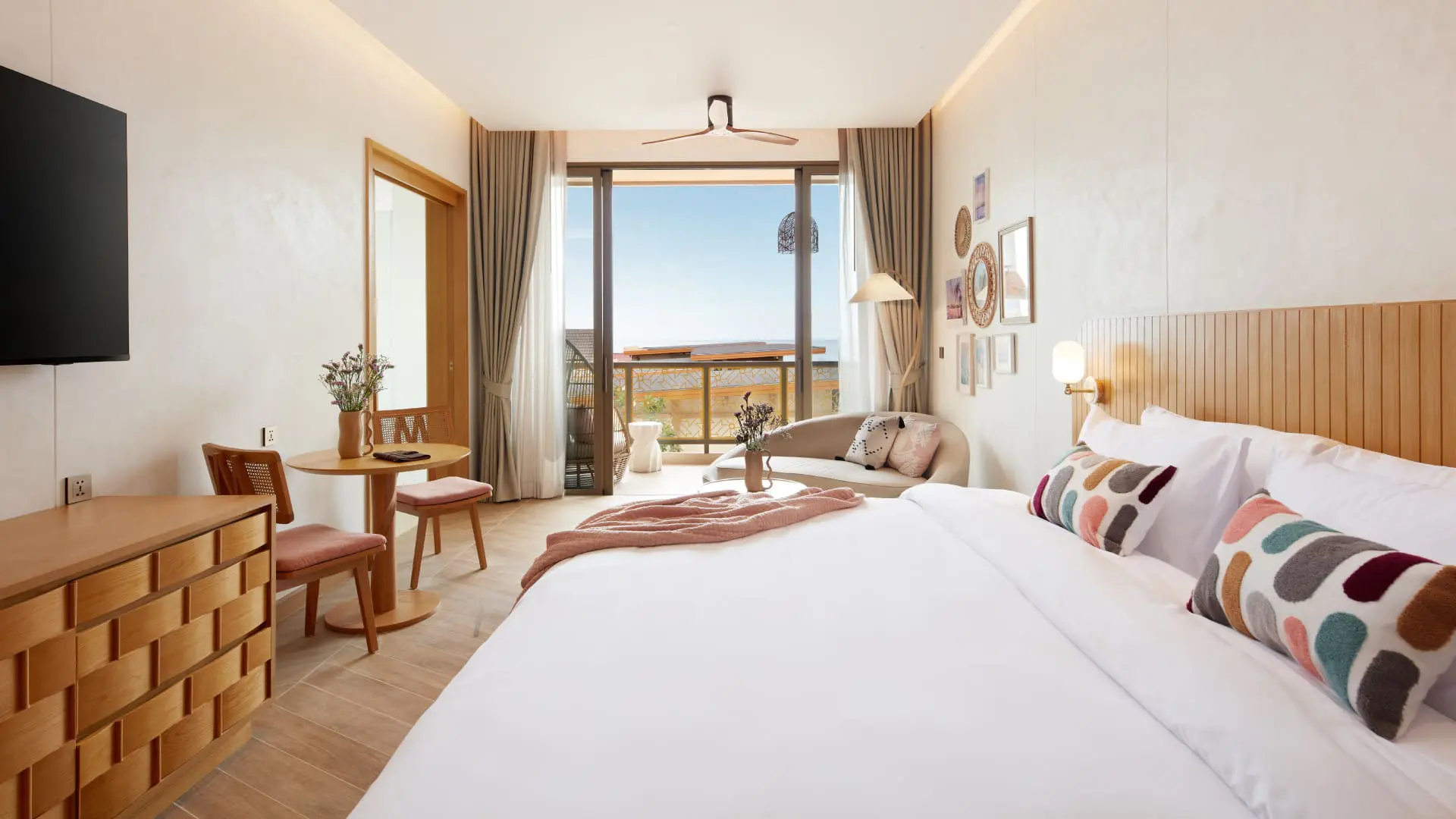 สัมผัสความสะดวกสบายพื้นที่นั่งเล่นกว้างขวาง ภายในและภายนอกห้องพักบรรจบกันอย่างกลมกลืนลงตัว ภายในห้องพักคุณจะพบกับพื้นที่นั่งเล่นที่แสนสบาย สามารถเปิดไปสู่ระเบียงขนาดใหญ่กลางแจ้งพร้อมที่นั่ง สร้างมุมส่วนตัวที่สมบูรณ์แบบ เหมาะการสำหรับพักผ่อนและช่วงเวลาพิเศษของคุณ